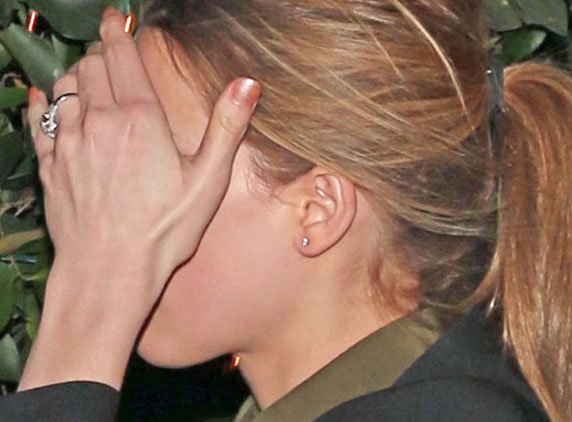 Recently, Miss Amber Heard was caught in the camera wearing a  big diamond on her ringer. Despite a good effort to conceal it, the eagle-eyed paparazzo got a bird's-eye view of the rock as Heard was spotted leaving a restaurant with a gal pal last night in Los Angeles.