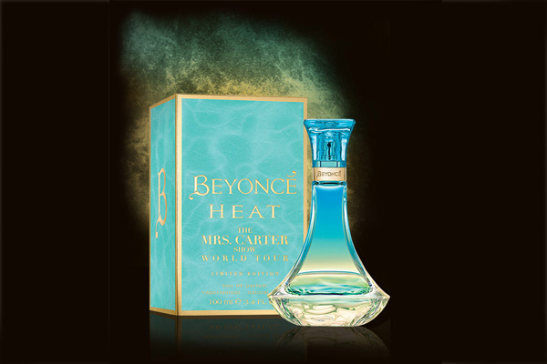 The seductive Heat – The Mrs. Carter Show World Tour, a blend of florals, vanilla, sandalwood and acai, comes in a turquoise glass bottle and  captures the "power, passion and playfulness" of Knowles` show.