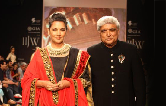The second day of the spectacular India International Jewelery Week 2013 was a sight to see as veteran couple Shabana Azmi and Javed Akhtar sashayed across the ramp decked in Golecha's Jewels.